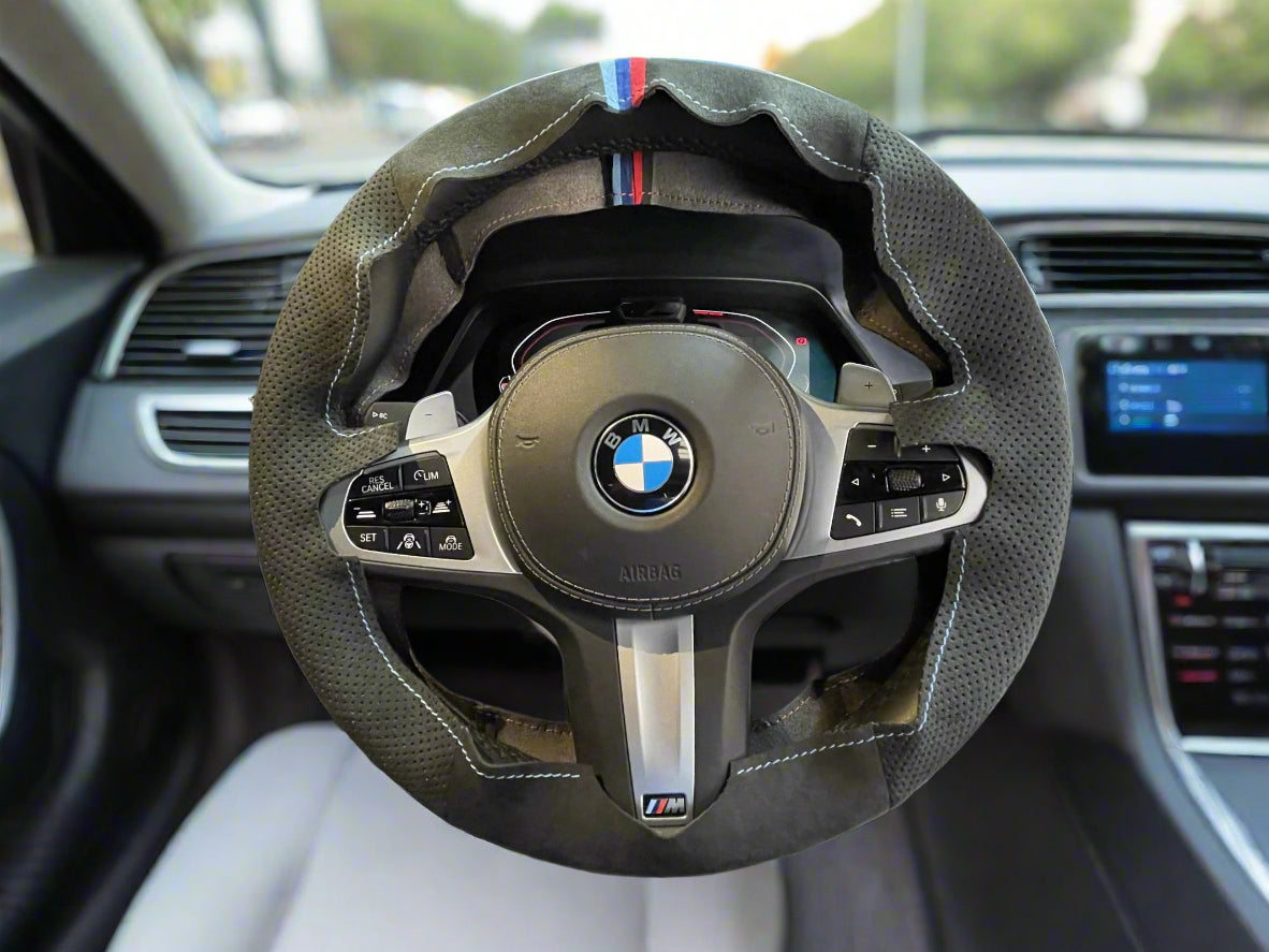 Custom steering wheel wraps are premium covers designed to fit over your existing steering wheel (No need to remove original cover), enhancing both its appearance and feel. Our wraps are tailored to your specific vehicle make and model, providing a perfect fit that transforms your steering wheel with high-quality materials and craftsmanship.